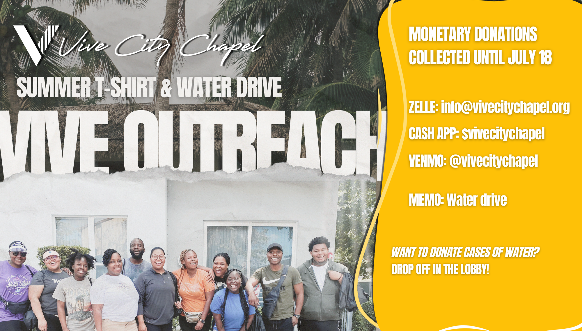 Join Vive Outreach as we demonstrate the love of Jesus and distribute t-shirts and bottled water to the communities of Overtown and Downtown Miami.