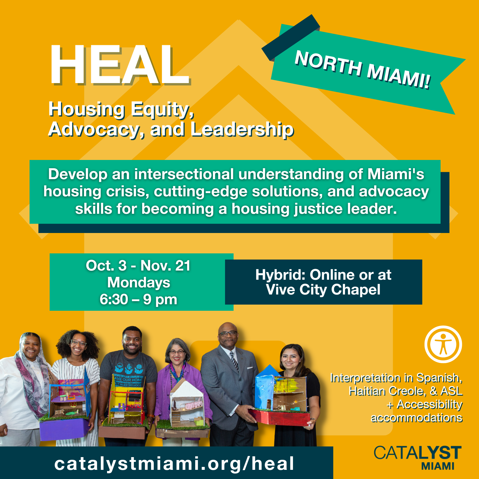 HEAL (Housing Equity, Advocacy, and Leadership) is a free 7-week leadership training program that provides participants with the groundwork to become affordable housing advocates, educators, leaders, and innovators in their communities and beyond. Participants will develop leadership skills and a deep understanding of the history of housing advocacy, cutting-edge solutions, and how to get involved locally.